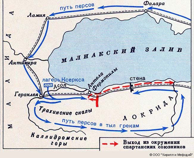 План печально известного Фермопильского сражения, возглавляемого спартанским царем Леонидом.