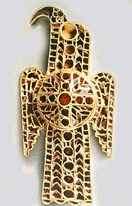 Вестготская фибула (застежка для плаща) в виде орла из золота с альмандинами. 5 век. Нюрнберг, Национальный музей.