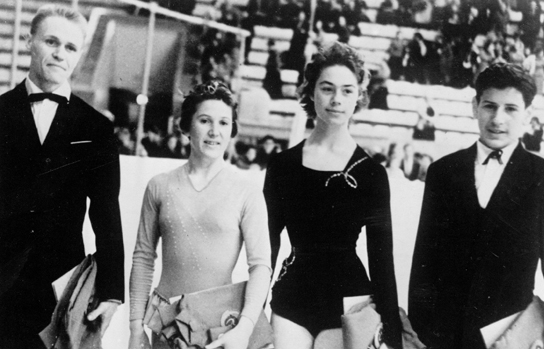 Ведущие фигуристы конца 1950-х — начала 1960-х гг., чемпионы СССР Нина и Станислав Жук (парное катание), одиночники Татьяна Немцова, Валерий Мешков.