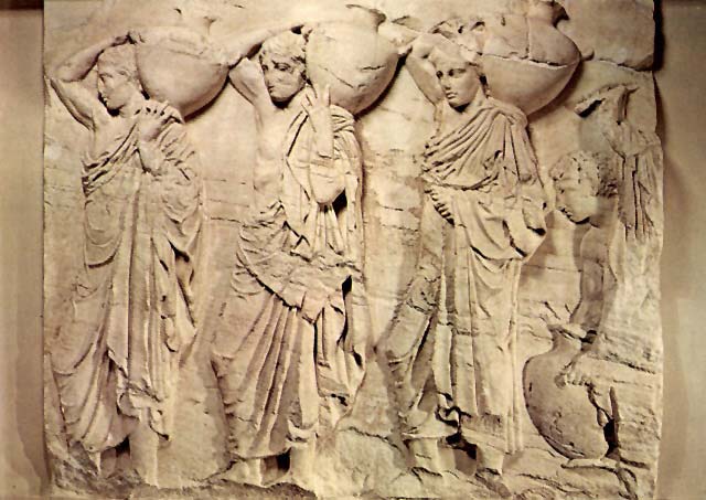 Фидий и его школа. Юноши с вазами. Северный фриз Парфенона. Деталь. Музей Акрополя, Афины.