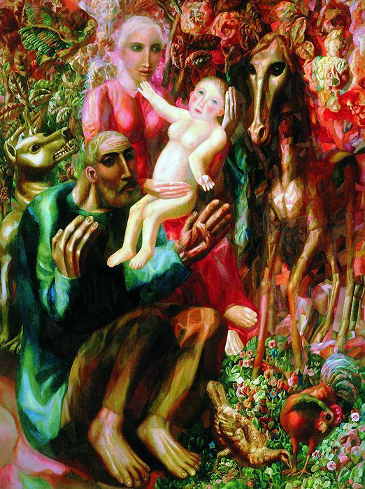 П.Н. Филонов. Крестьянская семья. Святое семейство. 1914 год. Холст, масло. Русский музей, Петербург.
