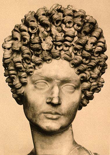 Женщина из династии Флавиев. 1 в. до н.э. Портретное искусство во времена императоров из династии Флавиев (70-92 гг. н.э.) получило новое развитие — образы людей, в отличие от портрета эпохи Августа, стали окрашиваться тонкими эмоциональными состояниями. ИСпользование бурава в скульптуре позволило придать портретам живописность за счет пышных причесок с вьющимися локонами.