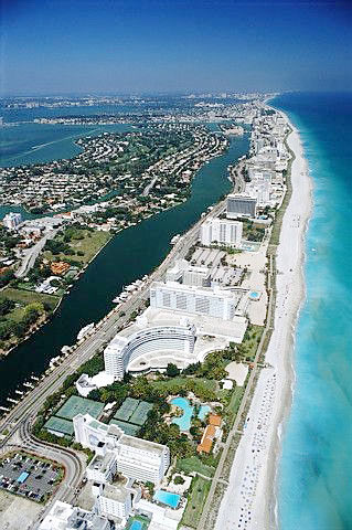 Майами. Курортный пригород Майами-бич. Прибрежная пляжная полоса.