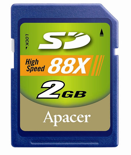 Высокоскоростная (88x) карта флэш-памяти формата SecureDigital емкостью 2 Гб.