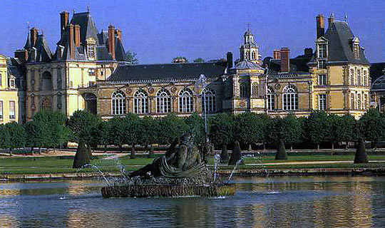 Фонтенбло. Вид на замок со стороны бассейна с фонтаном.