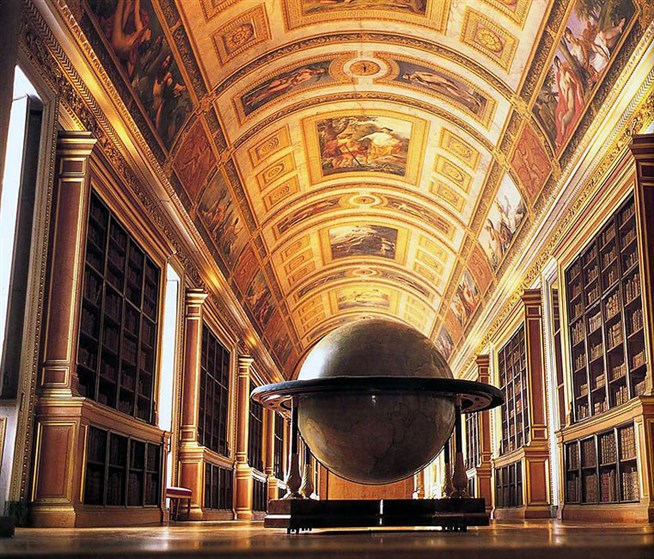 Галерея Дианы. В середине 19 в., в правление Наполеона III (1852-1870) галерея была переделана в библиотеку. Сейчас здесь хранится около 16 тыс старинных книг из императорской коллекции и глобус, принадлежавший Наполеону I Бонапарту.