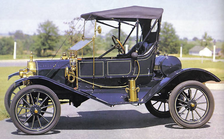Ford T, выпускавшийся в 1908-1927 гг., стал первым в мире автомобилем, производство которго было налажено на конвейере. Он оснащался четырехцилиндровым 20-сильным мотором и развивал скорость до 70 км/ч.