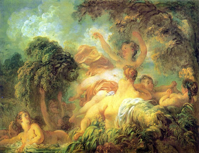 Оноре Фрагонар. Купальщицы. 1772-1775 годы. Холс, масло. Лувр. Париж.