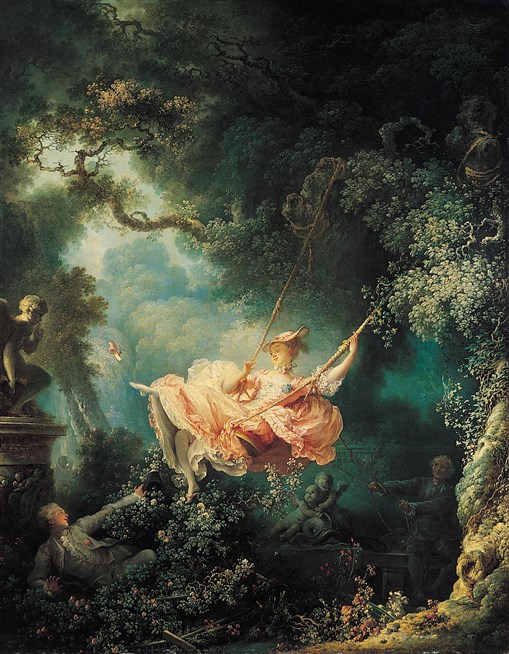О. Фрагонар. Счастливые возможности качелей. Между 1767 и 1769 годами. Холст, масло. Коллекция Уоллеса, Лондон.