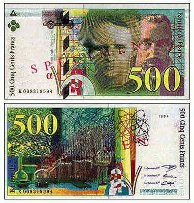 Пятьсот французских франков. 153 x 80 мм. 1994 г.