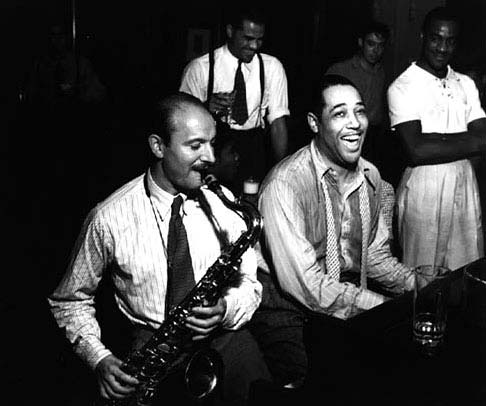 Бад Фримен (слева) на джем-сейшне с Дюком Эллингтоном.