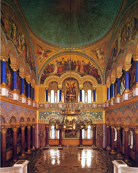 Нойшванштайн. Тронный зал совмещает в себе колоритность арабской мечети и великолепие католического собора.