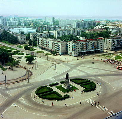 Привокзальная площадь. На переднем плане памятник Е. Хабарову.