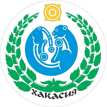 Герб Республики Хакасия, принятый 6 июня 1992 года. Он представляет собой изображение на белом фоне стилизованного свернувшегося барса синего цвета в обрамлении березовых ветвей зеленого цвета. В основании ветвей расположен элемент хакасского национального узора — трилистник. В верхней части герба — солярный знак золотисто-белого цвета. В нижней части герба — надпись черного цвета «Хакасия». Изображение свернувшегося в кольцо барса встречается на археологических находках в Минусинской котловине.