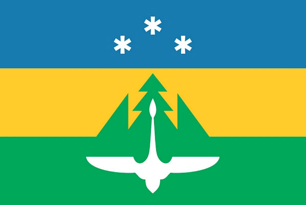 Флаг Ханты-Мансийска был принят 30 декабря 2002 года. На полотнище голубого, желтого и зеленого цветов изображены элементы городского герба.