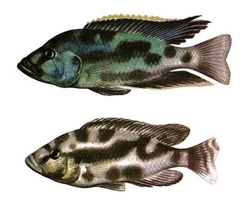 Хаплохромис Ливингстона. Вверху самец, внизу самка.