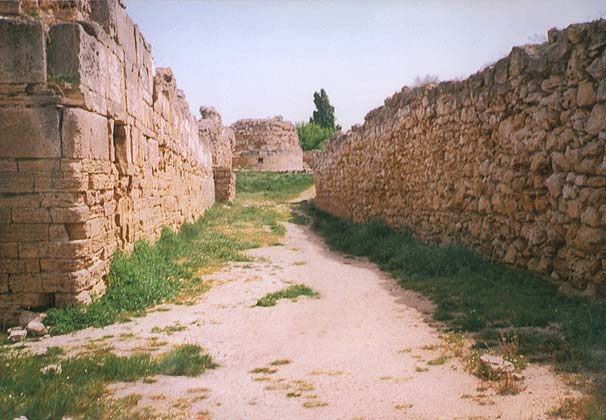 Античная улица. Проходит между двумя рядами городских стен. В перспективе — башня императора Зенона.