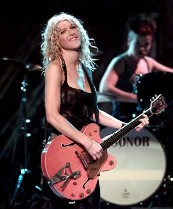 Кортни Лав на концерте с гитарой.