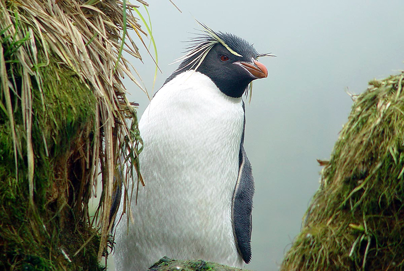 Хохлатые пингвины предпочитают гнездиться среди кочек, заросших травой.