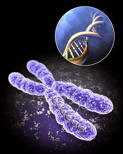 Хромосомы являются важнейшей составной частью клеточного ядра. В неделящихся клетках они имеют форму тончайших хроматиновых нитей и поэтому не видны. Во время деления нити хроматина спирально накручиваются на особые белки. Так образуются хромосомы. Каждая хромосома состоит из двух спирально свернутых молекул ДНК, или хроматид. В определенных местах хромосомы образуется одна или несколько перетяжек. Одна из них называется первичной, или центромерой.