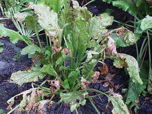Церкоспороз, болезнь сахарной свеклы. Возбудитель грибок Cercospora beticola.