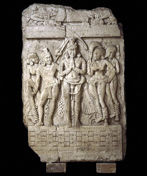 Известняковая панель с изображением чакравартина с купола ступы в Амаравати, Индия, 2 в. н. э. Британский музей. Лондон.
