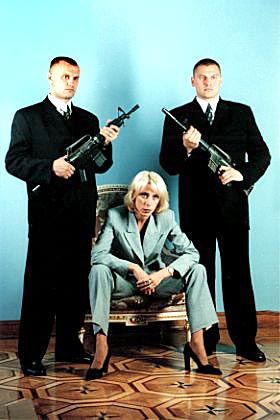 Кадр из фильма «Чек». Марина (Юлия Рутберг) с телохранителями.