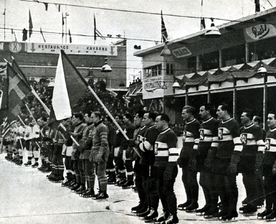 В 1947 в Праге состоялся очередной чемпиона мира по хоккею. Впервые золотые медали завоевали чехословацкие хоккеисты (на снимке: справа).