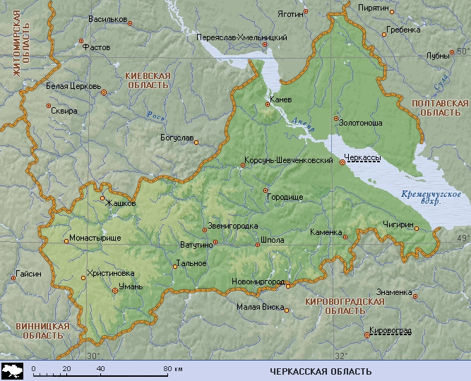 Черкасская область (географическая карта)