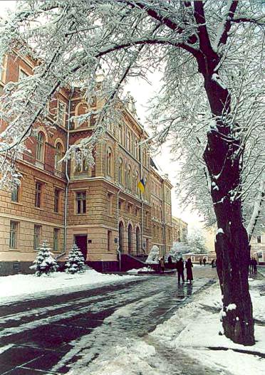 Черновцы. Дом со львами на ул. Грушевского. Ныне здесь размещается областная рада.