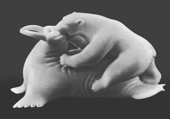 Мастер Хухутан (Уэлен). «Медведь и морж». Моржовая кость. 1956. Музей народного искусства. Москва.
