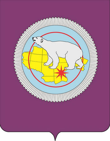 Герб Чукотского автономного округа был принят 27 ноября 2000 года. Фиолетовый цвет геральдического щита означает полярную ночь. Белый медведь является традиционным символом региона. Желтый цвет, в который окрашено символическое изображение территории округа, — символ золота — основного богатства Чукотки. Красная звезда символизирует Полярную Звезду. Восемь ее равных лучей символизируют единство восьми районов автономного округа с административным центром — городом Анадырем. Голубой цвет круга отражает просторы двух океанов — Тихого и Северного Ледовитого, омывающих Чукотский полуостров. Красный цвет кольца указывает на особое положение региона, являющегося пограничной территорией северо-востока Российской Федерации. Лучи вокруг всего изображения символизируют северное сияние и белое пространство чукотской тундры зимой. Количество лучей равно 89 — по числу регионов Российской Федерации.