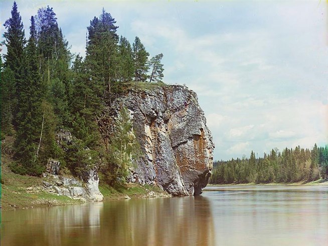 Максимовский камень на реке Чусовой. Фотография С.М. Прокудина-Горского. 1912 год.