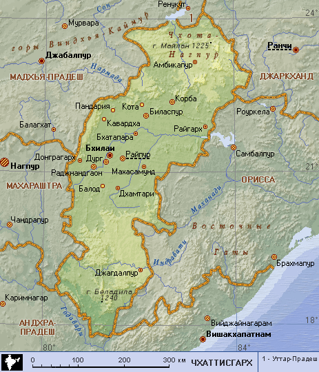 Чхаттисгарх (географическая карта)