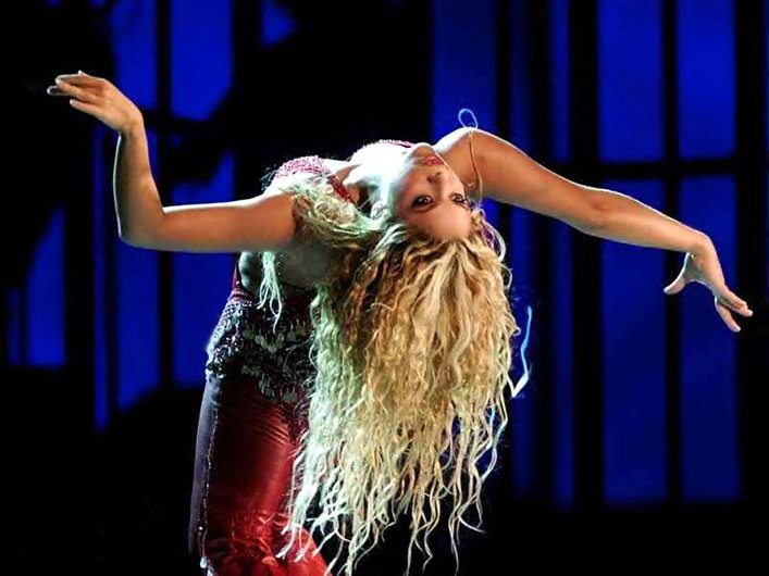 Эффектны в исполнении Шакиры элементы восточных танцев.