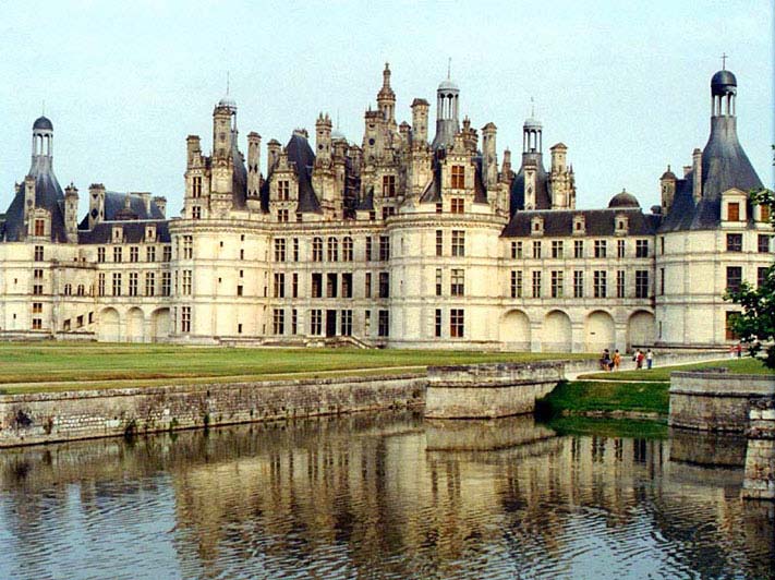 Замок Шамбор. 1519-1559 годы. Французское Возрождение связывают с долиной Луары — местом строительства дворцов и замков для короля и высшей знати. Охотничий замок Шамбор был построен при Франциске I Валуа. В замке столько же комнат, сколько дней в году. Здание отличает строгая симметрия общей композиции, сочетание элементов готики и классической ордерной системы.