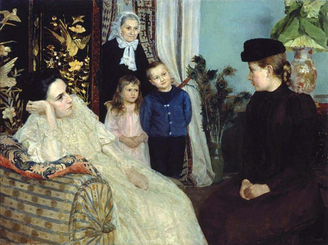 Эмилия Яковлевна Шанкс (1857-1936). Наем гувернантки. Холст, масло. Томский музей изобразительных искусств.