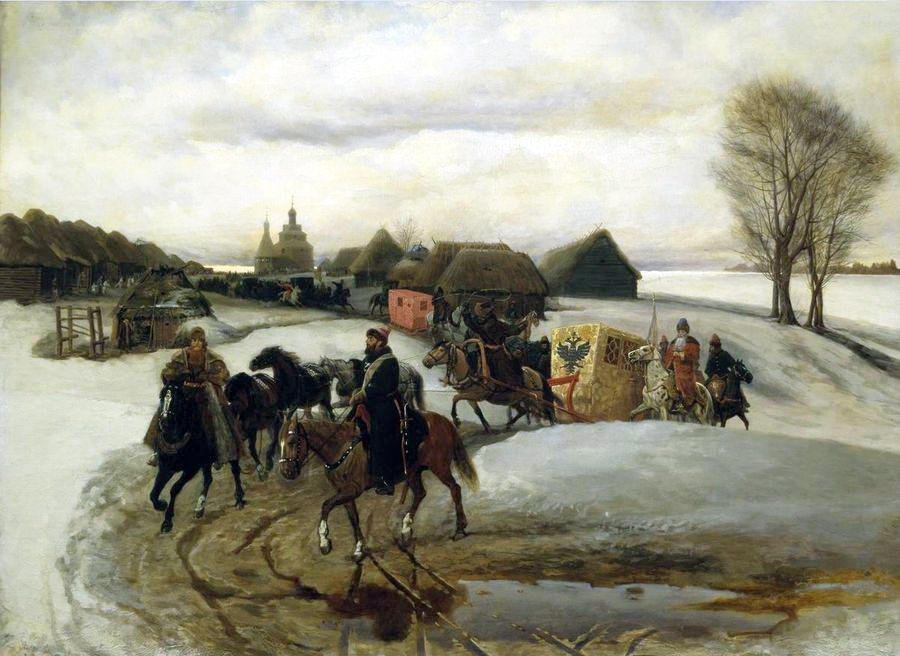 В.Г. Шварц. Вешний поезд царицы на богомолье при царе Алексее Михайловиче. 1868 год. Холст, масло. Третьяковская галерея.