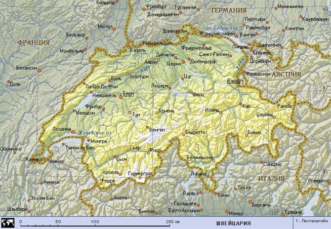 Швейцария (географическая карта).