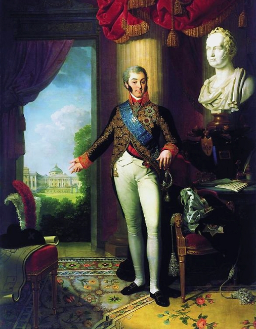 В.Л. Боровиковский. Портрет Н.П. Шеремева на фоне Странноприимного дома в Москве. 1818-1819 годы. Холст, масло. Музей-усадьба Останкино, Москва.