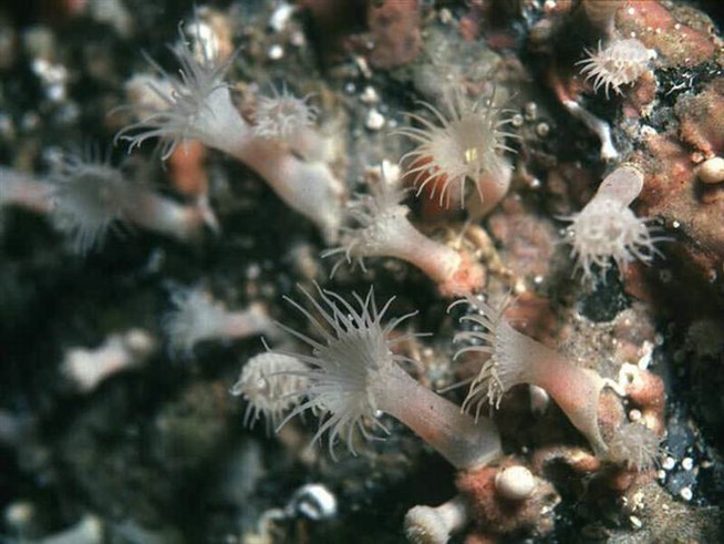 Панцирные анемоны (Parazoanthus anguicomus), разветвленные в виде деревца.