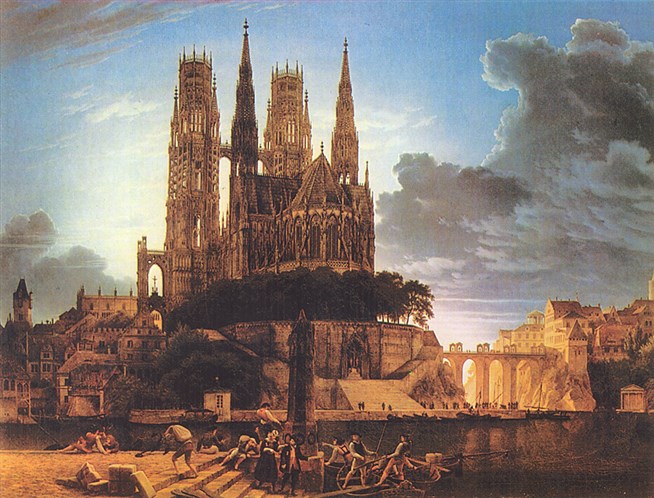 К.Ф. Шинкель. Готический собор на берегу. 1815 год. Холст, масло. Новая пинакотека, Мюнхен.