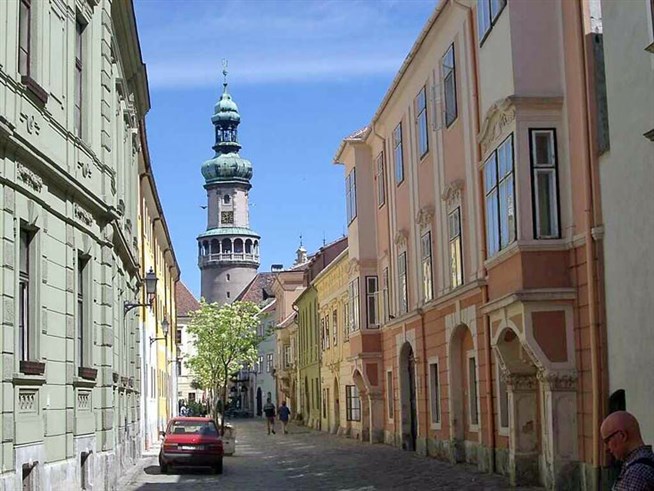 Шопрон. Городская башня — символ города, построенная между 1290 и 1340 гг. на остатках римской городской стены. Свой нынешний вид приняла после пожара 1676.