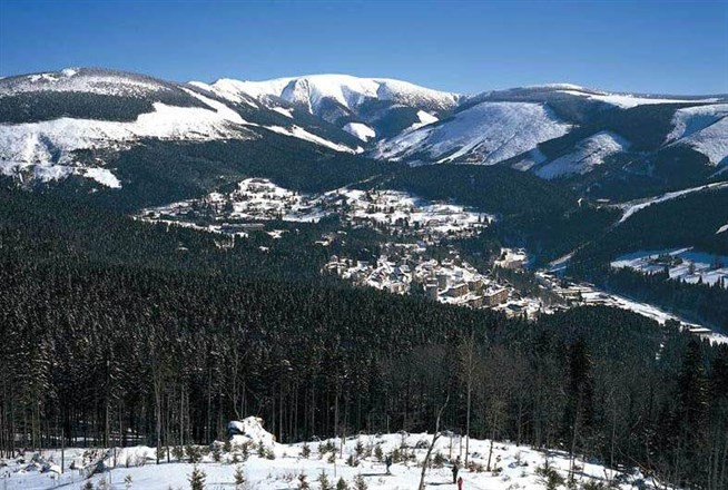 Шпиндлерув-Млин. Вид на заснеженный курорт.