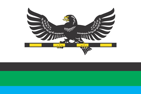 Флаг города Шумиха был принят 8 декабря 2005 года. В центре белой полосы — парящий черный коршун; коршун несет в лапах отрезок горизонтальной полосы, составленной из черных и желтых прямоугольников; клюв, язык и когти коршуна — желтые.