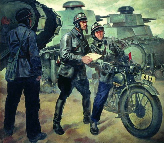 П.М. Шухмин. Танкисты. 1928 год. Холст, масло. Центральный музей Вооруженных сил, Москва.