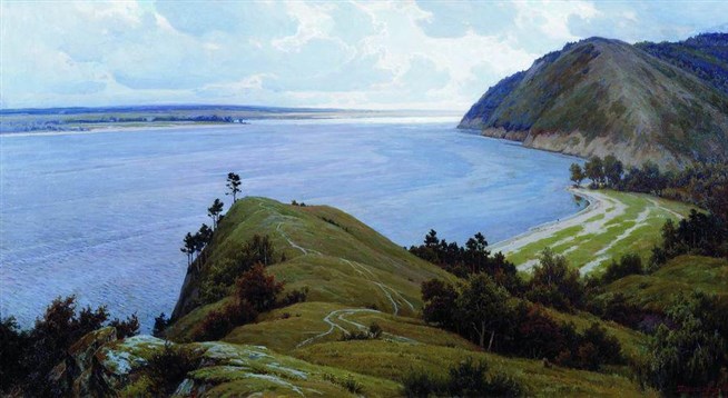Б.В. Щербаков. Течет река Волга. 1982 год. Картон, масло.
