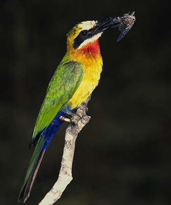 Белолобая щурка обитает в африканских саваннах и редколесьях.