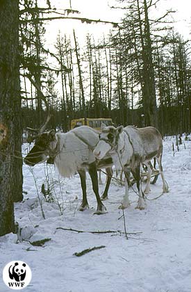 Ездовые олени. Стойбище эвенкийских оленеводов. Община Тяня. Резерват -ВВФ-Саха. Якутия.