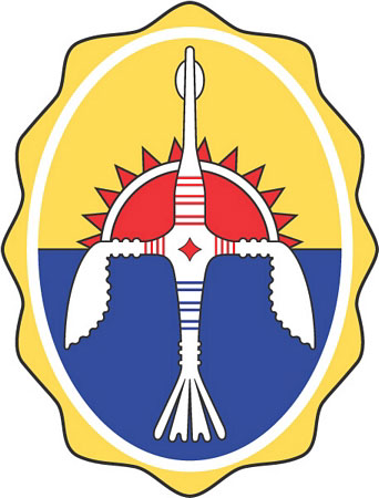 Герб Эвенкийского автономного округа представляет собой схематическое изображение ритуального шаманского бубна, в центре которого помещена мифическая птица — белая гагара. Внутренний фон герба разделен на две части: верхнюю желтого и нижнюю синего цвета. В верхней части находится красный полукруг с белыми зубцами, символизирующий солнце.
